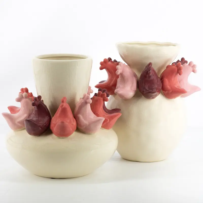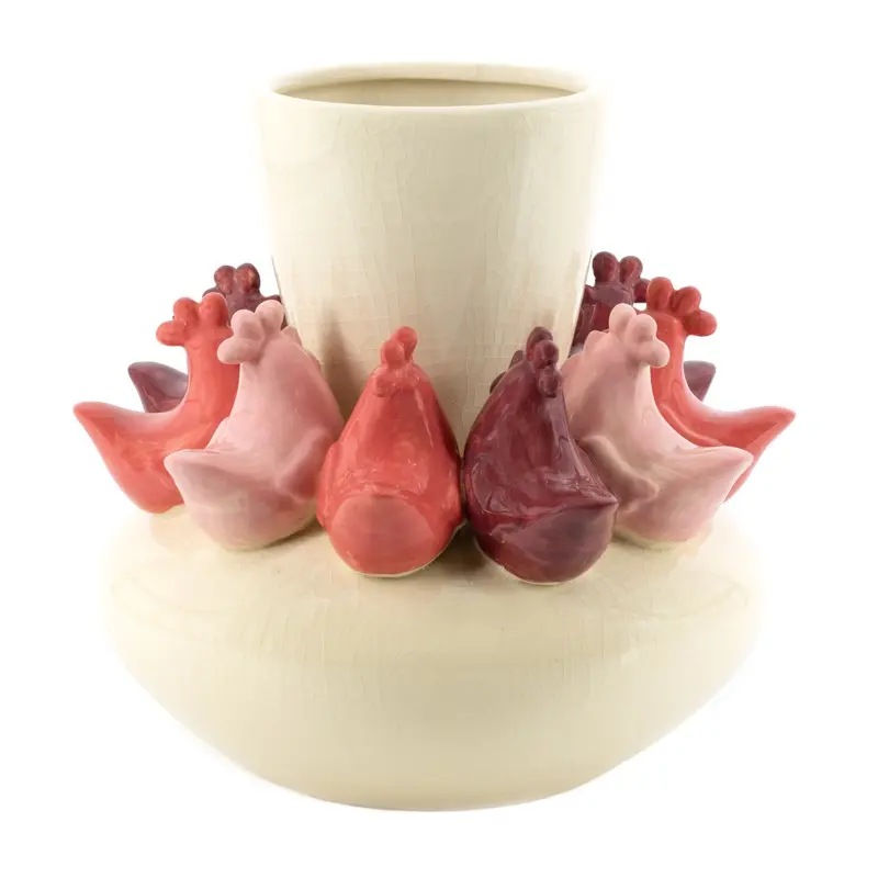 Bestel deze sfeervolle Keramiek Vaas met Kipjes vandaag nog bij Meubeldriveinn.nl en geef je interieur een unieke boost!