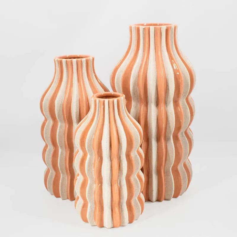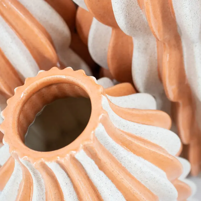 Ben je op zoek naar een decoratiestuk dat écht een statement maakt? De Vaas Stripes Sandstone in levendig oranje en fris wit is een artistiek hoogstandje voor elk interieur. Dankzij de verticale banen en de golvende ribbelstructuur heeft de vaas een dynamische en moderne uitstraling die nooit verveelt.