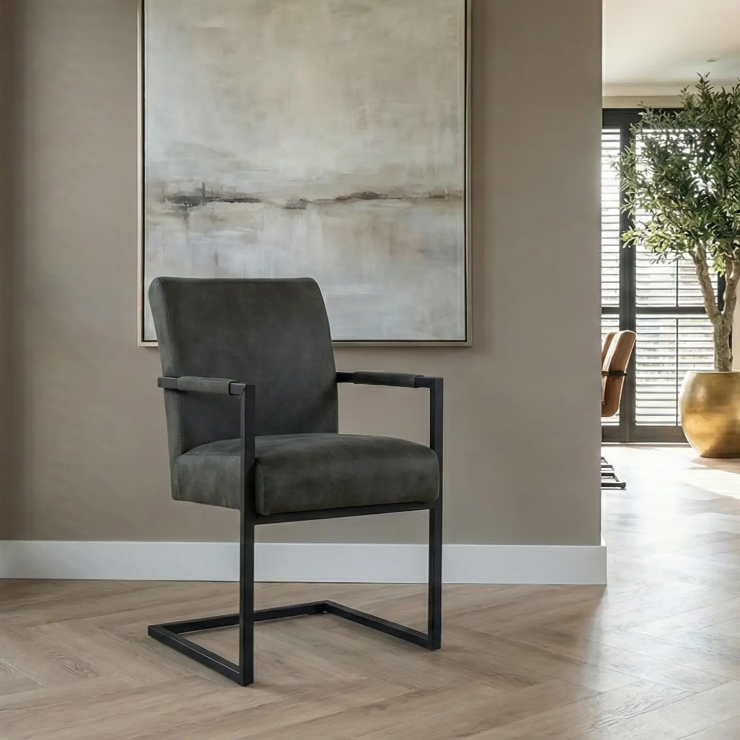 Bent u op zoek naar een eetkamerstoel die rust uitstraalt maar toch een stoer karakter heeft? Deze armstoel op een zwart metalen sledeframe is de perfecte keuze. In tegenstelling tot varianten met ruit- of baanverdeling, beschikt dit model over een volledig gladde rugleuning. Dit accentueert de natuurlijke uitstraling van het Microleder Bull en zorgt voor een tijdloos beeld aan uw eettafel.