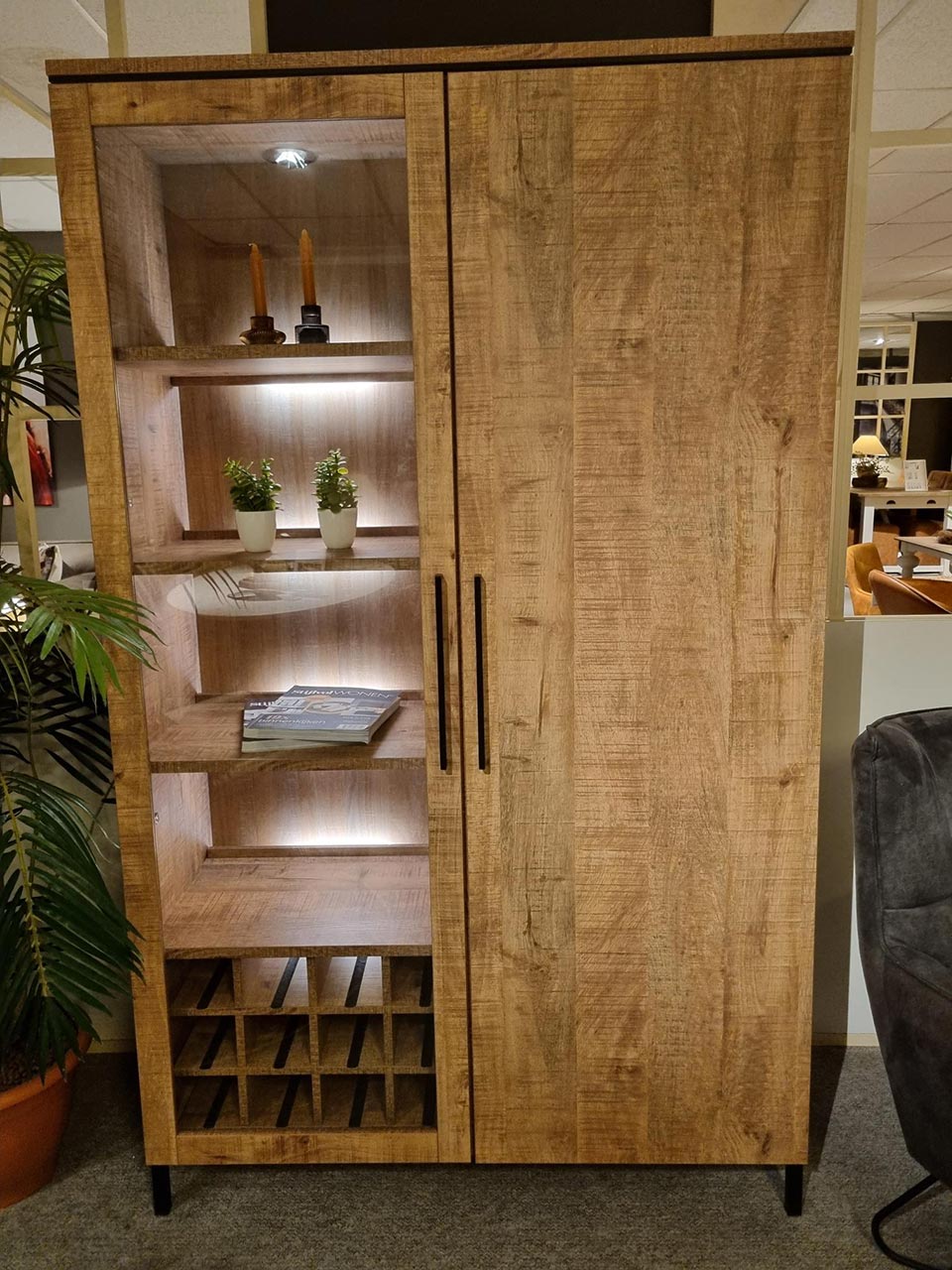 De luxe bergkast Zutphen 2 deurs 121cm heeft een luxe uitstraling en past perfect in een landelijk of modern interieur. De deuren van de kast zijn verkrijgbaar met glasdeur of met een houten deur. Optioneel kan de kast worden voorzien van een ladenblok en een wijnrek. De deur en laden zijn voorzien van een softclose systeem. De kast is voorzien van stevige handvaten voor een robuuste look. Tot slot is er keuze uit 3 verschillende type poten. Verkrijgbaar in 3 breedtes: 60cm, 121cm en 181cm.