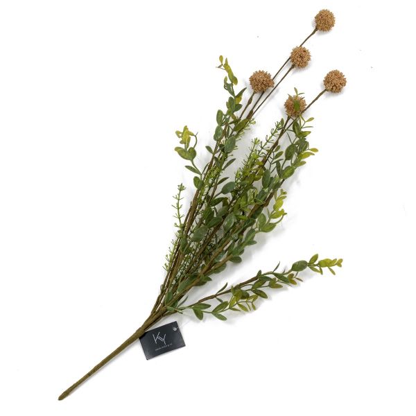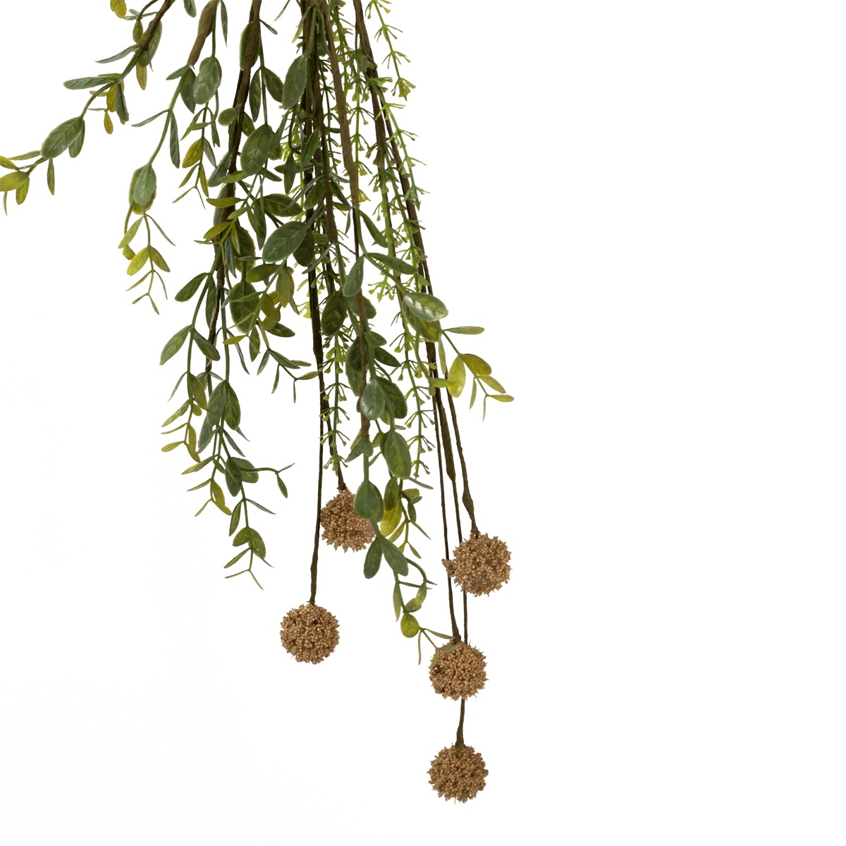 Kunsttak / kunstbloem groen met cremewitte bollen / bloemetjes – 53 cm