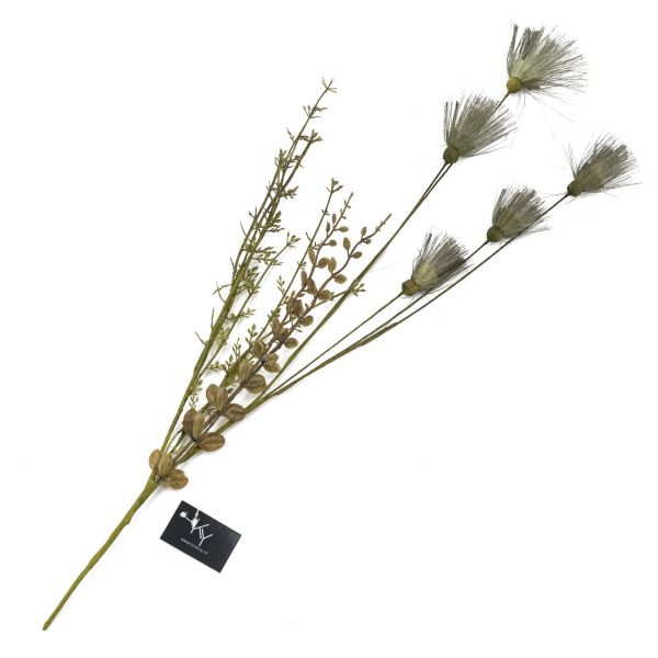 Kunsttak / kunstbloem groen met cremewitte bloemen met kwasten – 53 cm