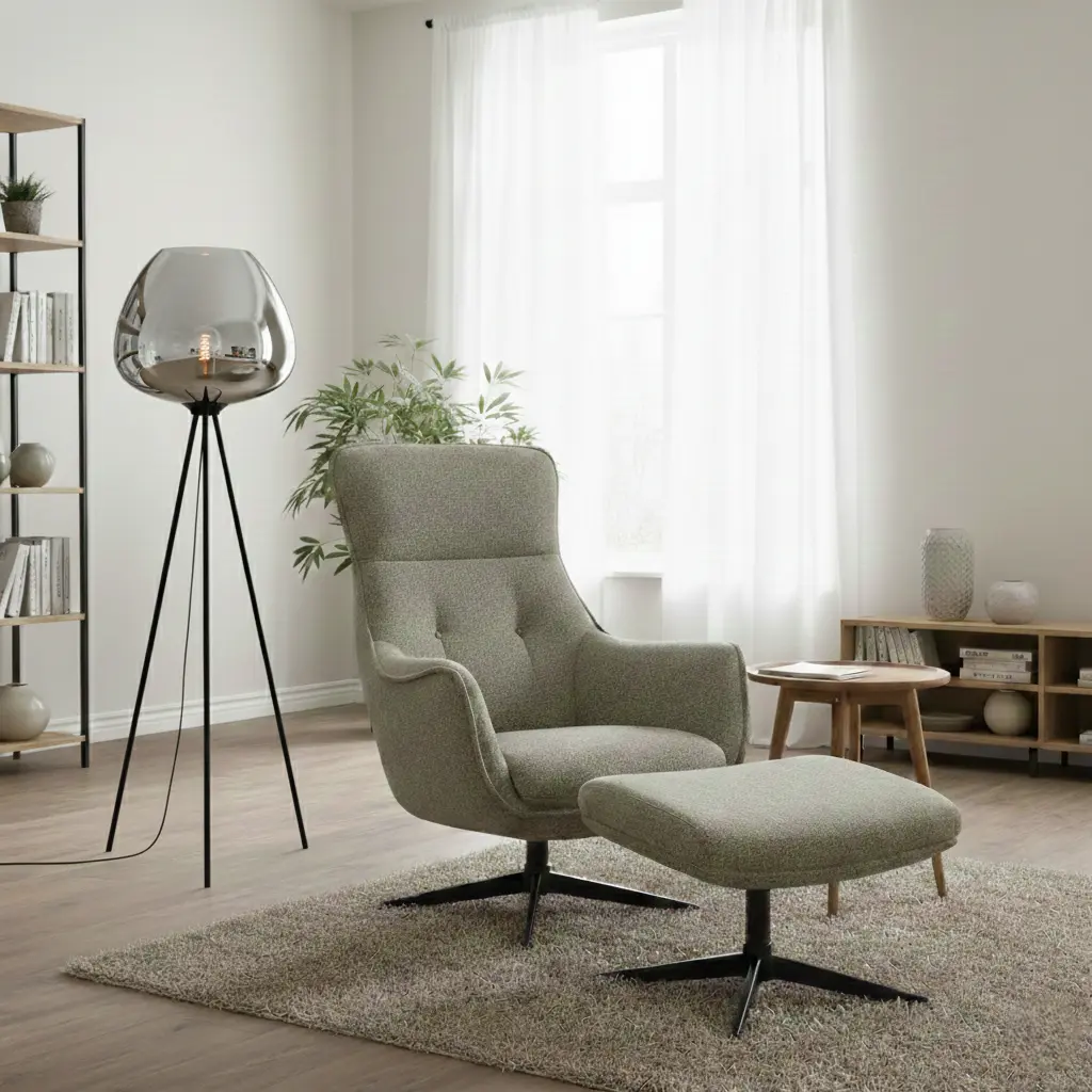Draaifauteuil Oldenzaal met hocker stof Taupe