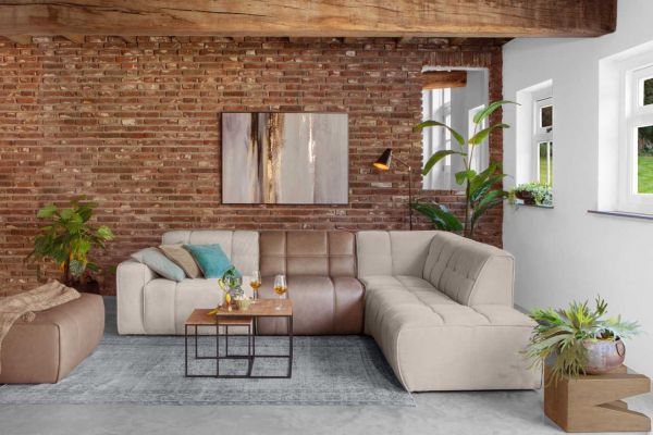 Luxe elementenbank Meppel in prachtige combinatie leder en stof.