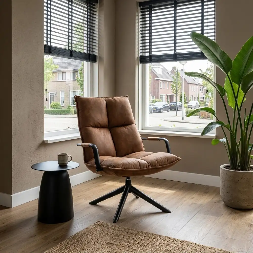 Luxe draaistoel met onderhoudsvriendelijke microvezel stof cognac