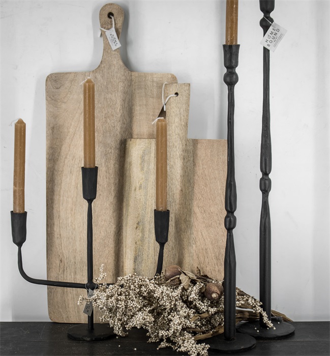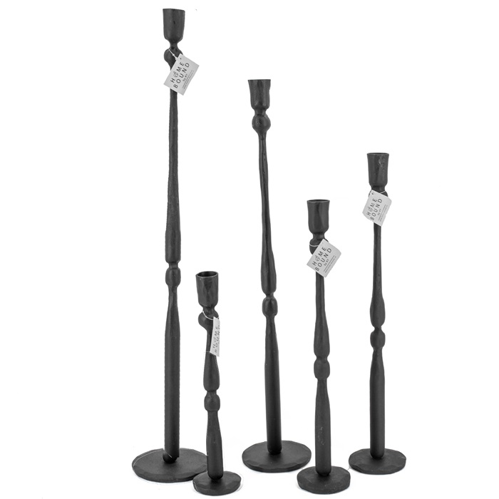 Stijlvolle kaarsenstandaard in zwart metaal 29cm.