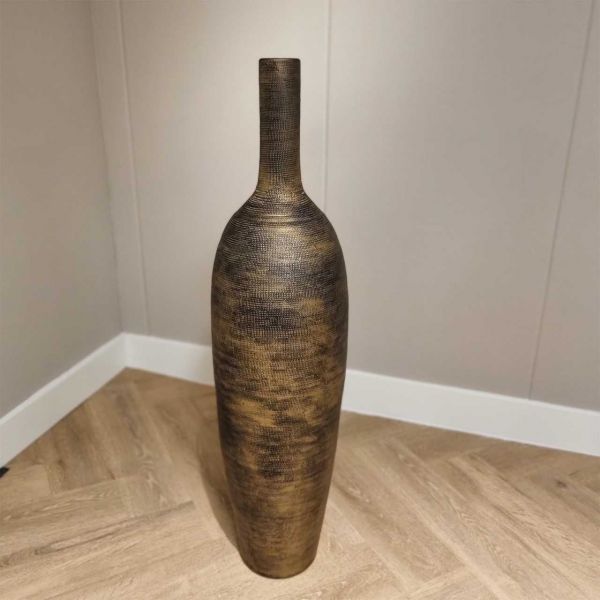 Keramiek XXL Fles Oldenzaal met Ruw Reliëf in Goud/Bruin – Ambachtelijk Handgemaakt – 80cm hoog