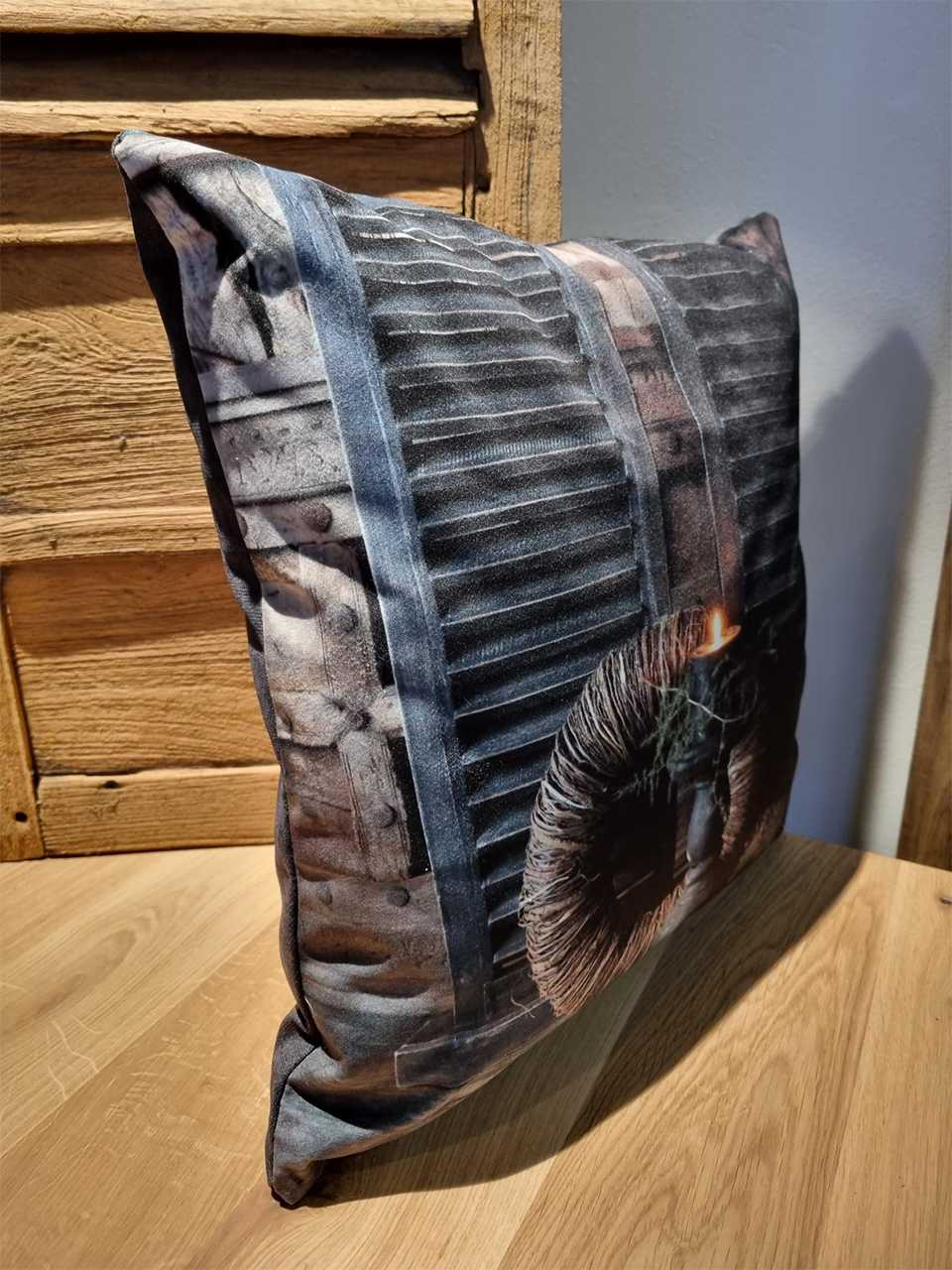 Met dit vierkante velvet sierkussen met prachtige antraciet grijstint en stilleven print – kandelaar – krans – louvredeuren – geef je jouw favoriete bank of fauteuil een extra accent! Combineer met effen kussens of met andere prints voor een chique uitstraling. Het kussen wordt geleverd inclusief binnenvulling. Het kussen voelt heerlijk zacht!