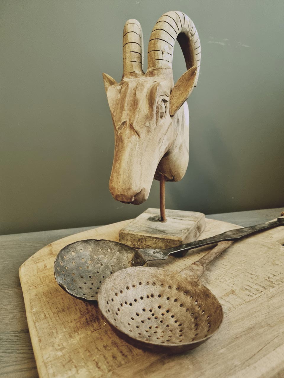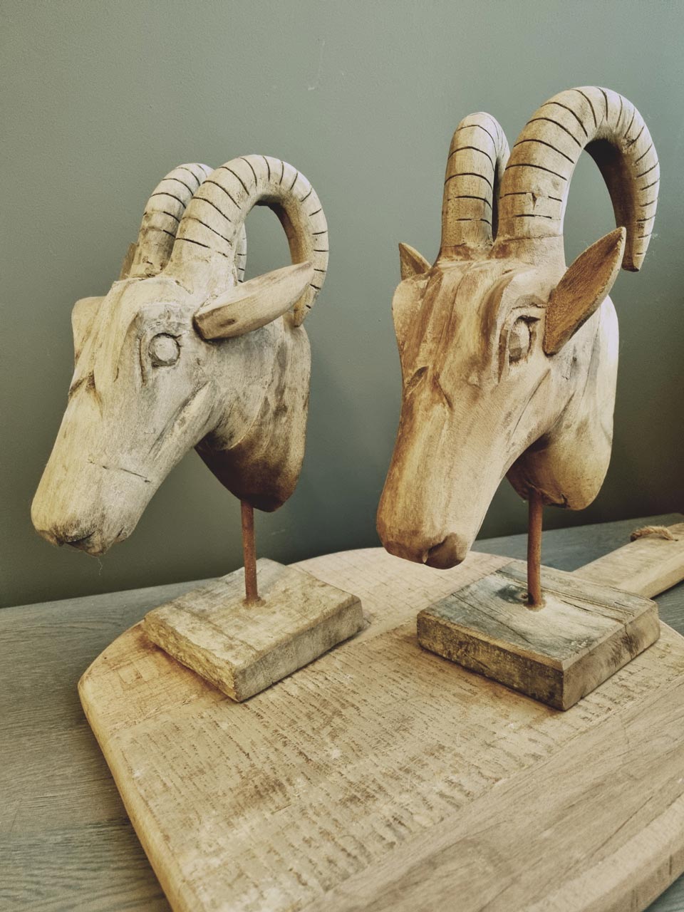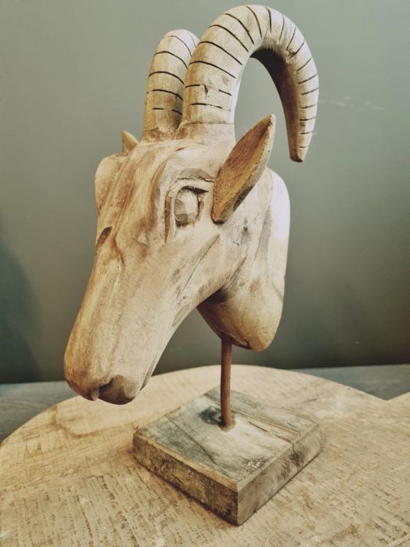 Gaaf decoratief houten geitenkop – oud hout