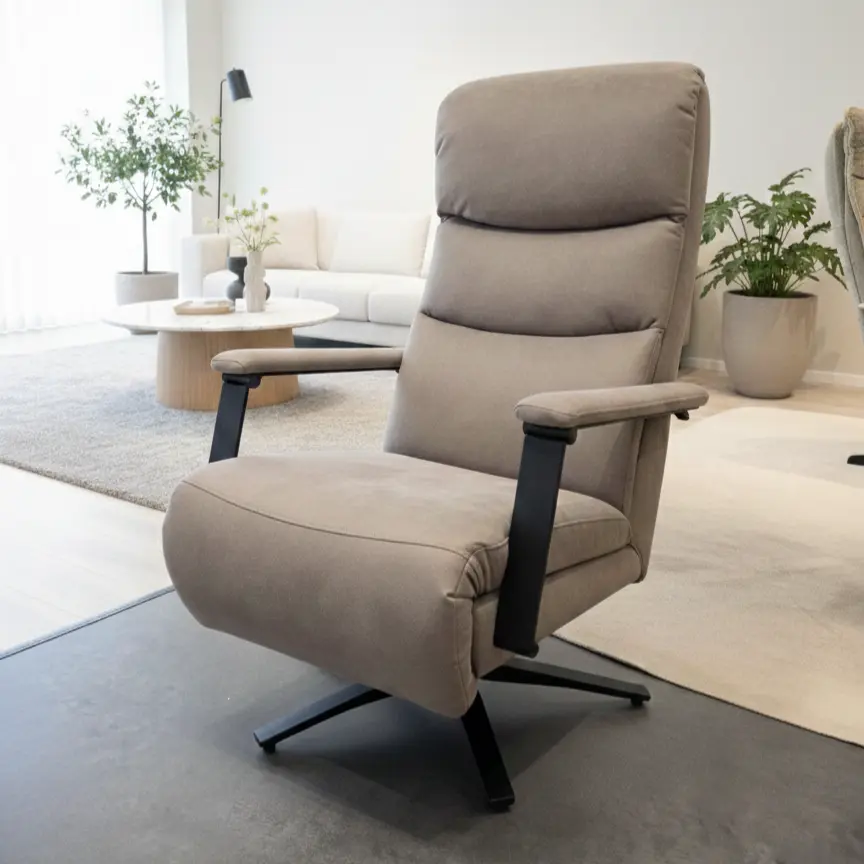 De Relaxfauteuil Drenthe is ontworpen voor wie houdt van een verfijnde uitstraling zonder in te leveren op functionaliteit. De stoel heeft een compacter profiel dan de gemiddelde relaxstoel, waardoor hij ook in kleinere ruimtes prachtig tot zijn recht komt. De kleur Clay is een warme, neutrale tint die moeiteloos combineert met diverse interieurstijlen.
