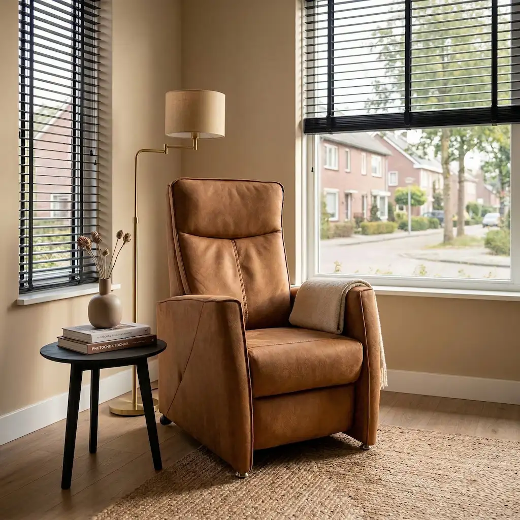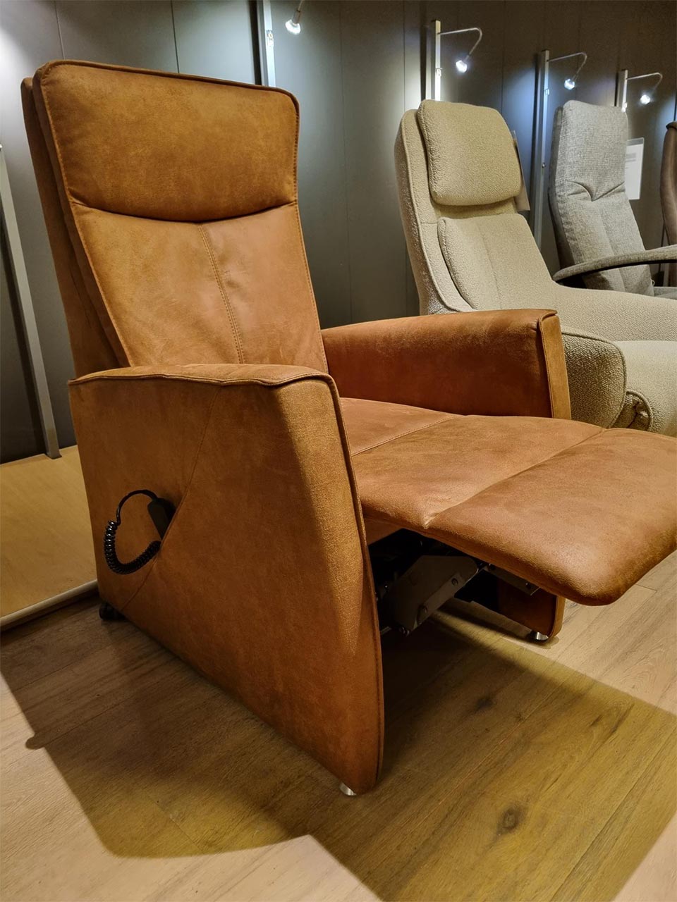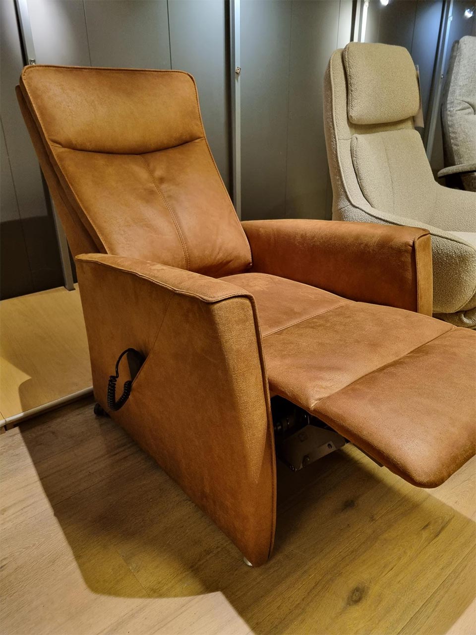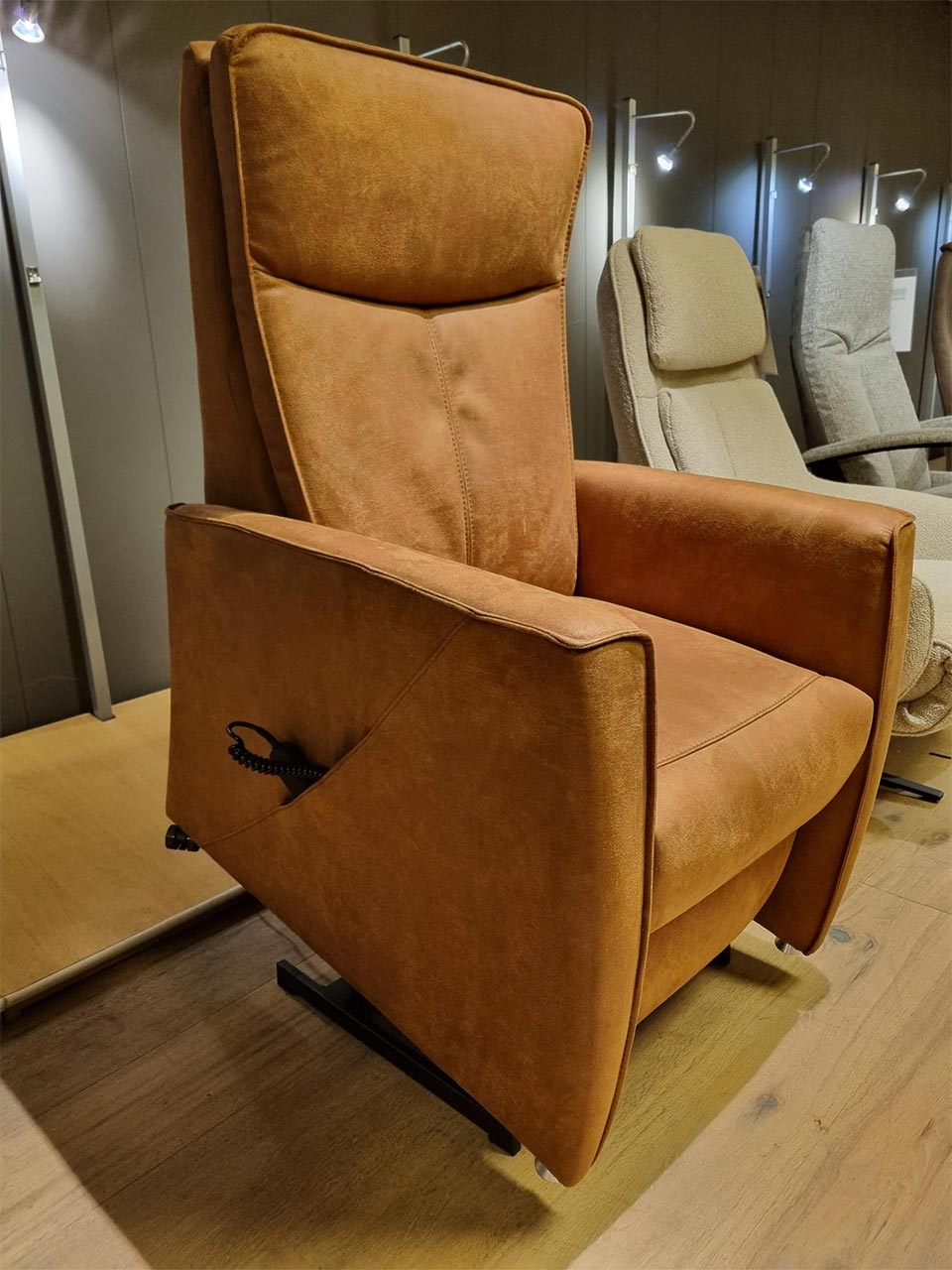 Stijlvolle sta-op-stoel | relaxfauteuil Geesteren met microleder Bull Camel.
