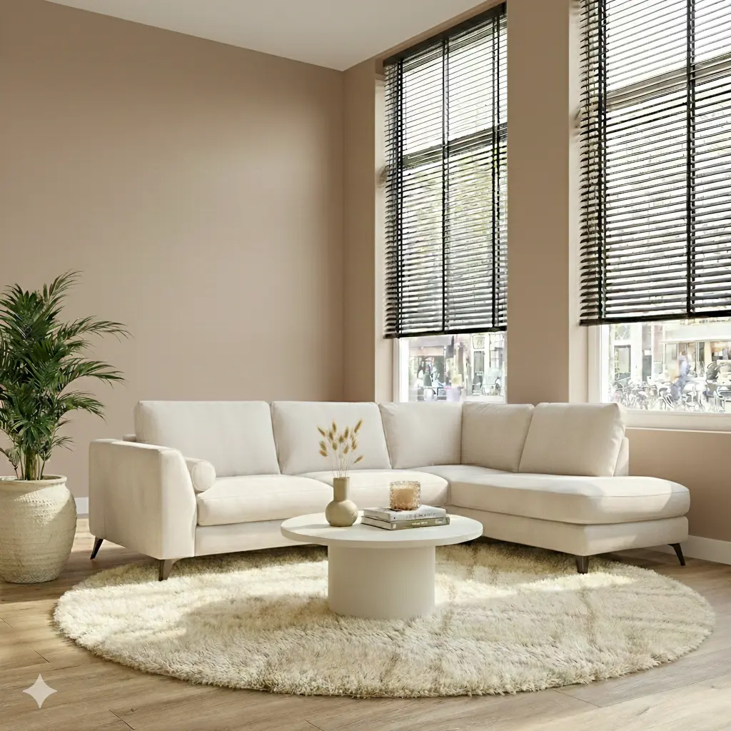 Rijssen hoekbank velours beige 3+Ottomane