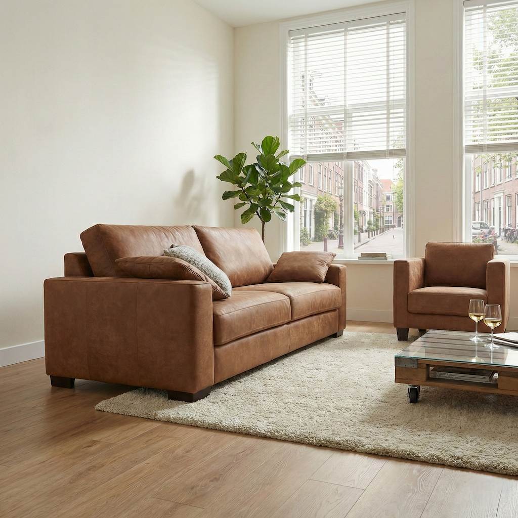 Nieuw lederen bankstel Rockefeller 2,5 zits met africaleder van Nederlands fabricaat! De bank Rockefeller maakt een geweldige indruk met het hoogwaardige Argentijns natuurleder. Het Africaleder heeft een zeer aantrekkelijke uitstraling, is duurzaam en kan zeer gemakkelijk worden onderhouden. Zoals te zien is op de foto, is de vormgeving van de bank Rockefeller tijdloos en elegant…. een echt juweeltje! Maar het belangrijkste is het geweldige zitcomfort. Aangezien dit moeilijk onder woorden gebracht kan worden, nodigen we u uit om in alle rust dit comfort in onze showroom te ervaren. We staan voor u klaar om u te adviseren over de verschillende maten, kleuren en ander leersoorten zoals toledoleder, microleder, stonewash leder, silk leder, cuba leder waarin deze bank te verkrijgen is.