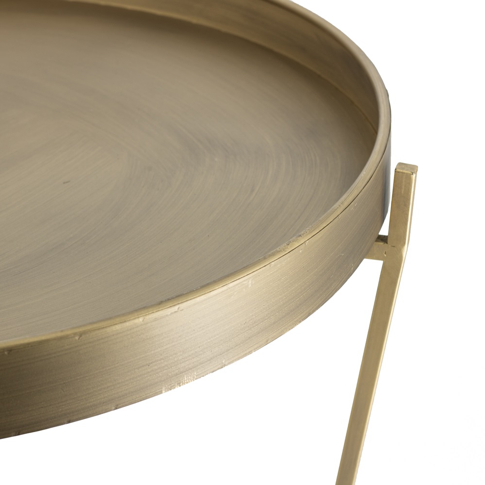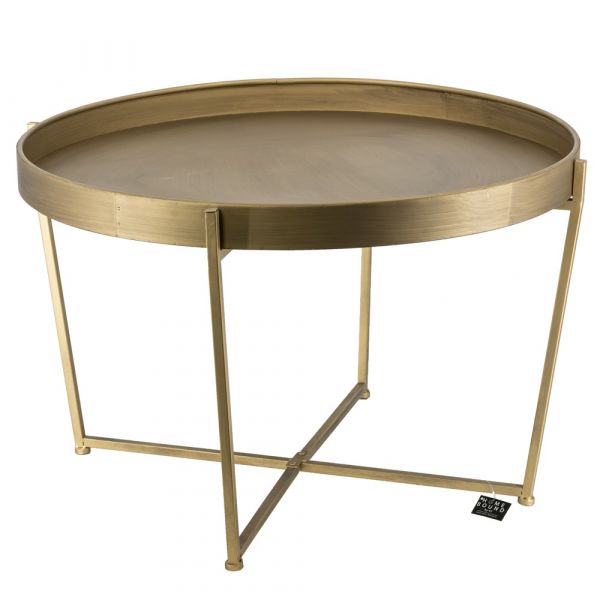 Deze exlusieve salontafel is mooi afgewerkt in goudkleurig metaal. De tafel is gemakkelijk bij te schuiven in zowel de woonkamer, serre of onder de overkapping. De salontafel heeft een afneembaar blad. Ook verkrijgbaar als bijzettafel in rond 48cm en rond 60cm.
