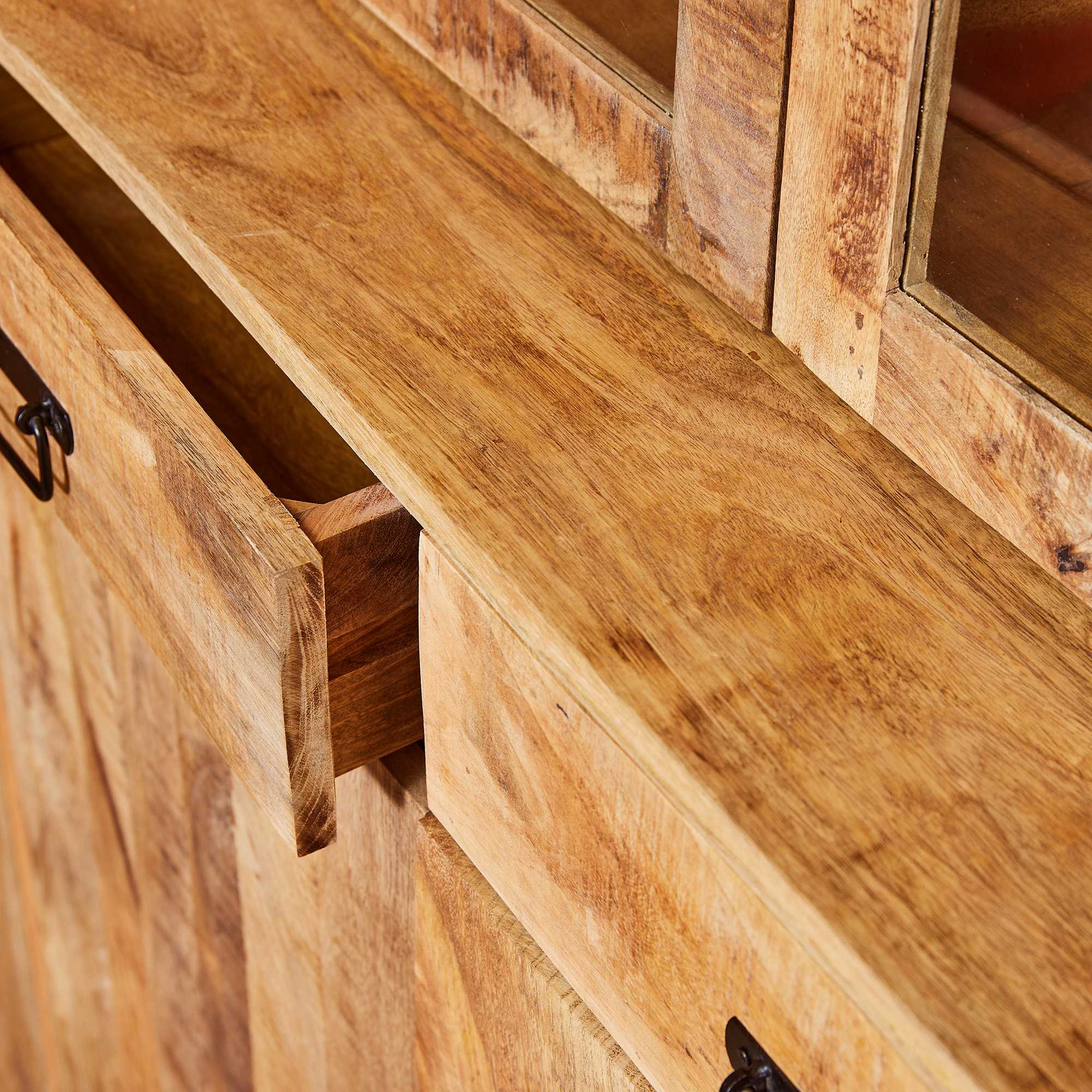 Vitrinekast Boaz XXL mangohout naturel 200cm
