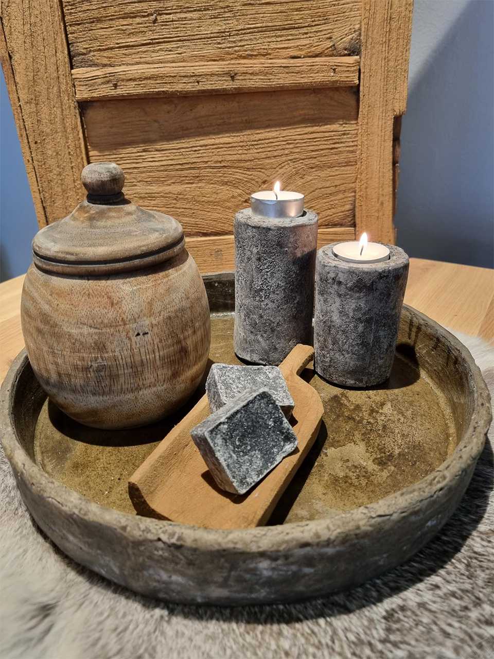 Waxinehouder van stoer keramiek in vintage stijl | antraciet | klein |
