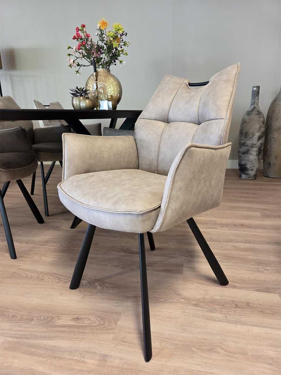 Luxe design armstoel Overijssel met metalen poten en handgreep | modieuze microvezelstof Taupe | SNEL LEVERBAAR |